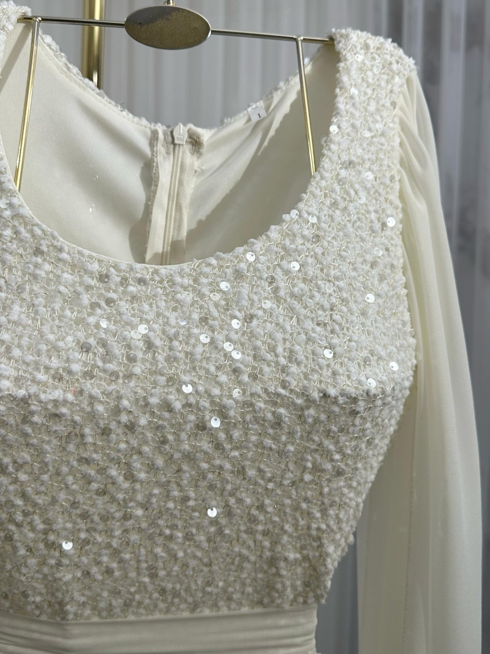 الغسيل: يفضل التنظيف الجاف فقط للحفاظ على جودة الترتر والشيفون