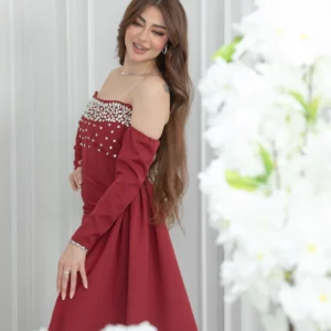 🎀 القماش مصنوع بعناية ليظهر بتدفق ناعم، مما يضفي مظهرًا متألقًا ومثاليًا للسهرة.
