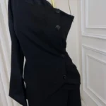 📦 يُعلق على شماعة مبطنة للحفاظ على شكل الكتف غير المتماثل والطيات.