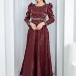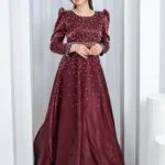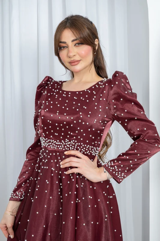 فستان “بريق القمر”: إطلالة راقية بسحر اللؤلؤ والتفته اللامع 🌙✨