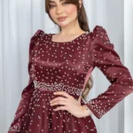 ✨ فستان فاخر مصنوع من تفته ستان لامع يمنحه إشراقة فاخرة وانسيابية راقية.