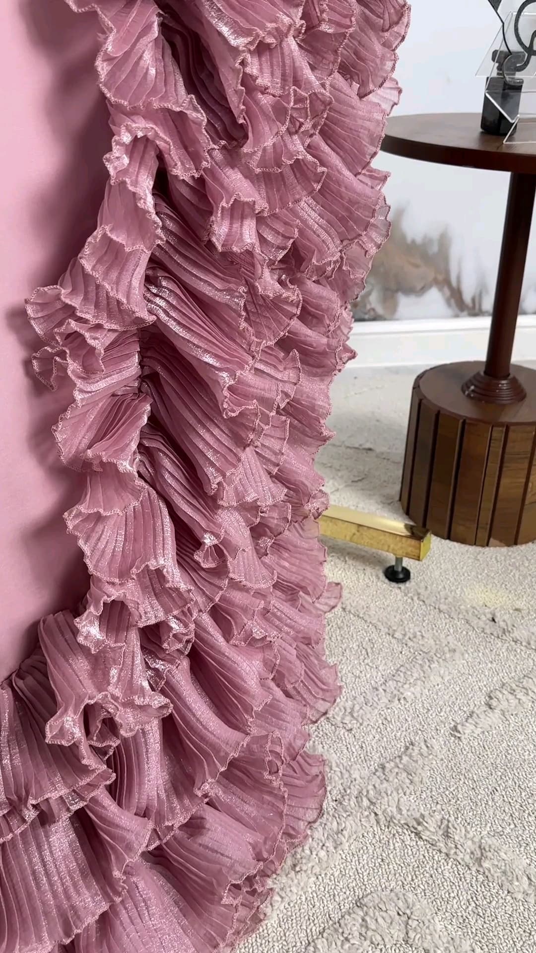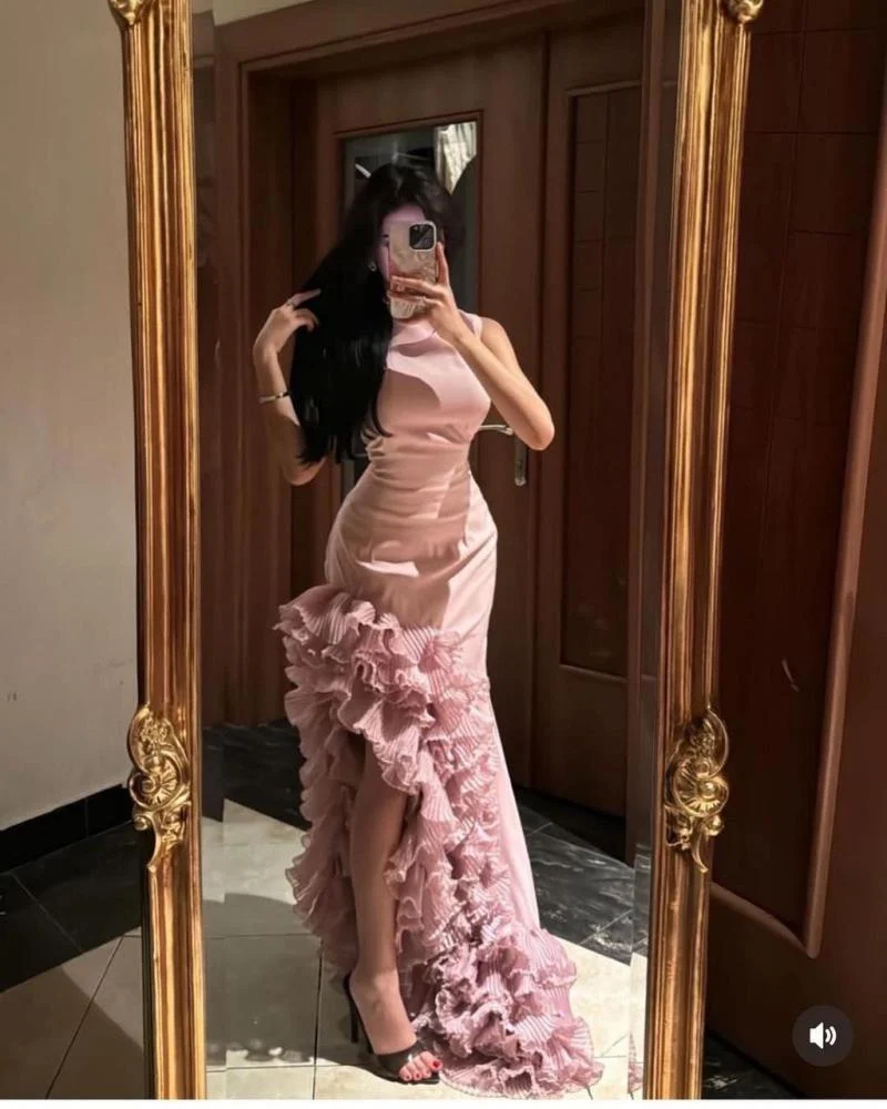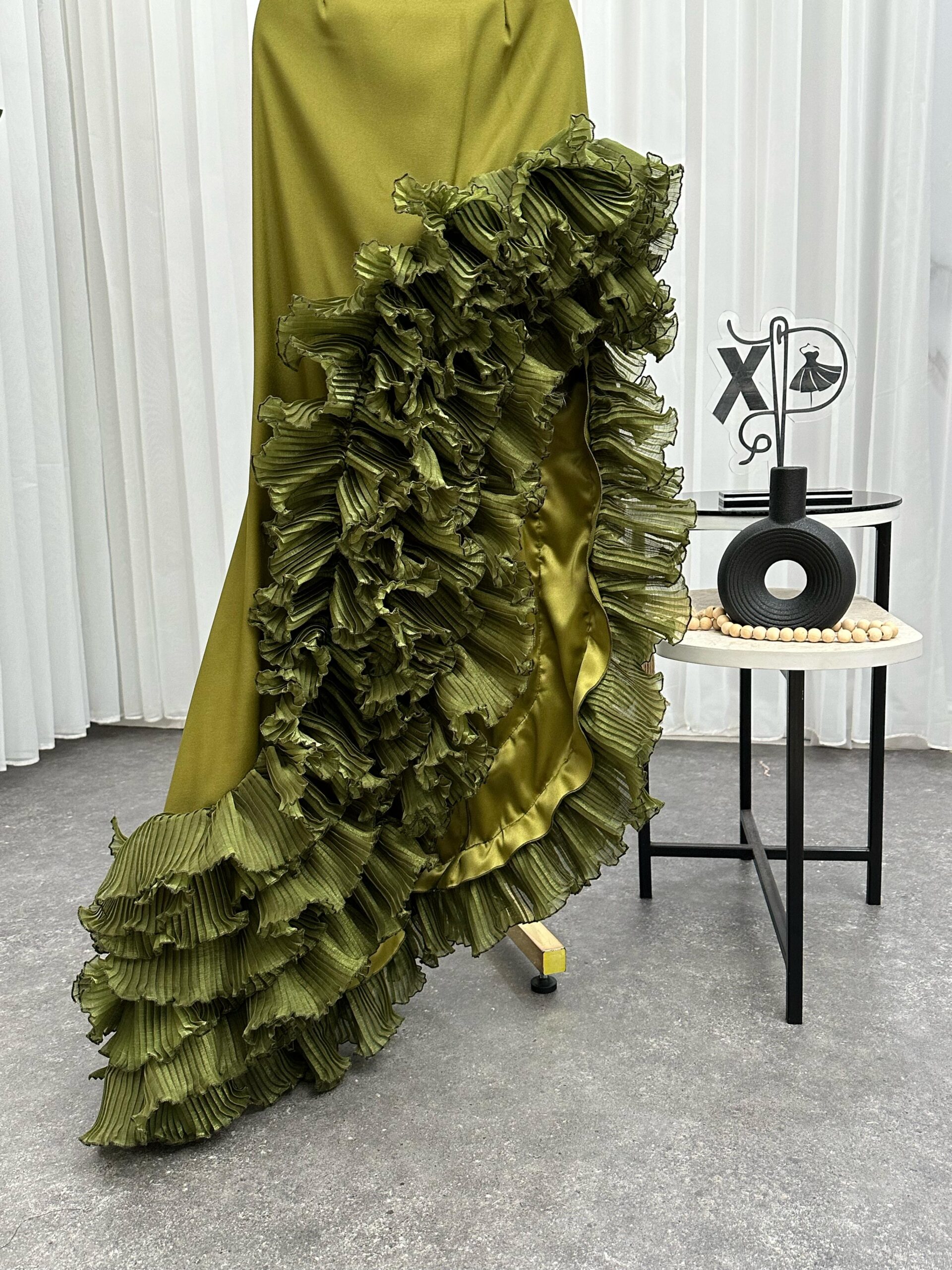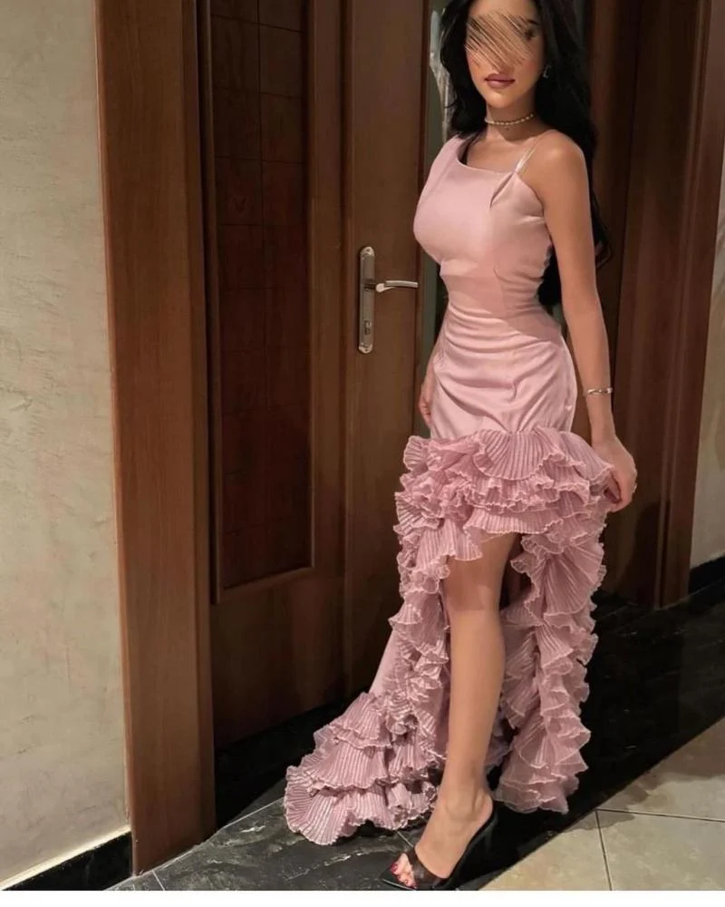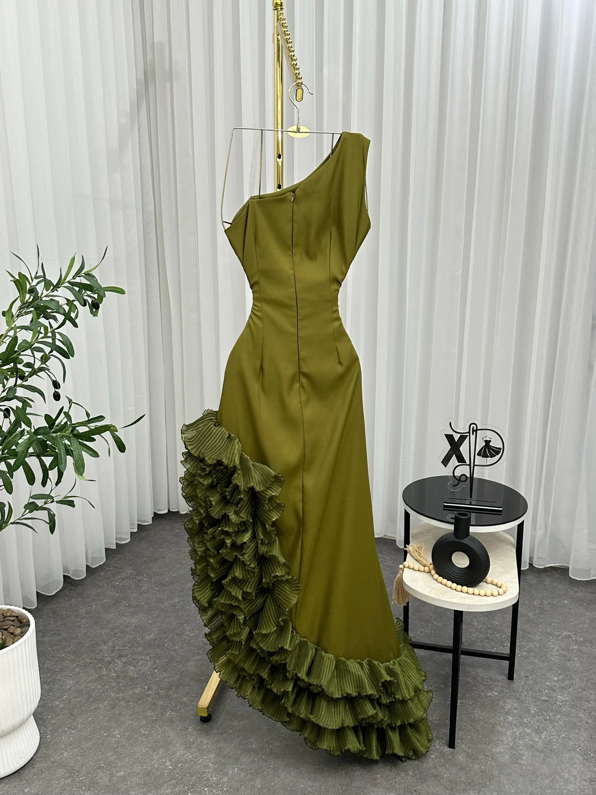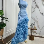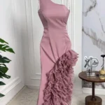 ✨ فستان تموجات السحر يتميز بتصميم كتف واحد أنيق مع كشكشة متموجة تنساب بانسيابية رائعة على التنورة.
