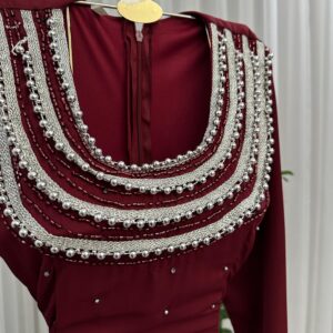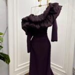 فستان سهرة فخم يجمع بين الانسيابية والدراما بأسلوب أنثوي راقٍ، مصنوع من كريب باربي فاخر مع قماش طايح ينسدل بنعومة مذهلة على القوام. يتميز بتفاصيل كرامشة أنيقة وطيات مكشكشة تضيف بعدًا بصريًا فخمًا ولمسة إبداعية، بينما تأتي الأكمام الطويلة المنسدلة لتعكس الرقي والأنوثة الناضجة. قصة الفستان انسيابية بأسلوب عصري، تجعله مثاليًا للحفلات، الأعراس، والمناسبات الراقية.