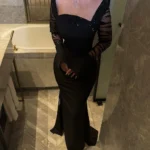 فستان سهرة فخم باللون الأسود بتفاصيل لامعة وأكمام شفافة، مثالي لحفلات العشاء، مناسبات الخطوبة، الأعراس، والتجمعات الفاخرة. تصميمه الأنيق يناسب الذوق الخليجي ويعزز الحضور الجذاب.