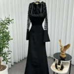 black evening dress – long sleeves gown – formal wear – embellished party dress – khaliji style