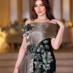 فستان سهرة طويل بتصميم فاخر وغير تقليدي، مصنوع من مزيج الباربي الفخم مع لمعة الجازار الأنيقة. يتميز بجزء علوي بكتف ساقط بستايل ملتف مع حركة لافتة من الشلال البليسيه على جانب التنورة. الجزء السفلي أسود ضيق مزين بتطريز ورد بارز بلون أخضر زيتي يضيف له فخامة ليلية راقية. يعتبر من فساتين سهره فخمة بتفاصيل استثنائية.