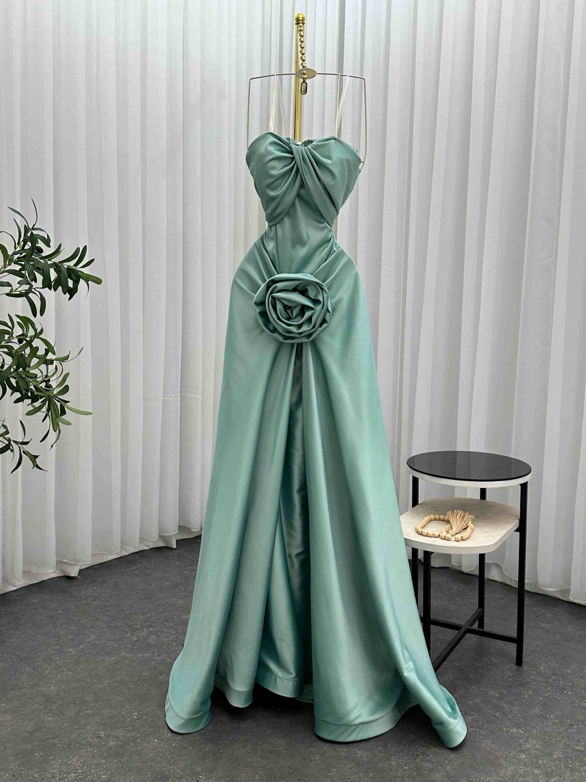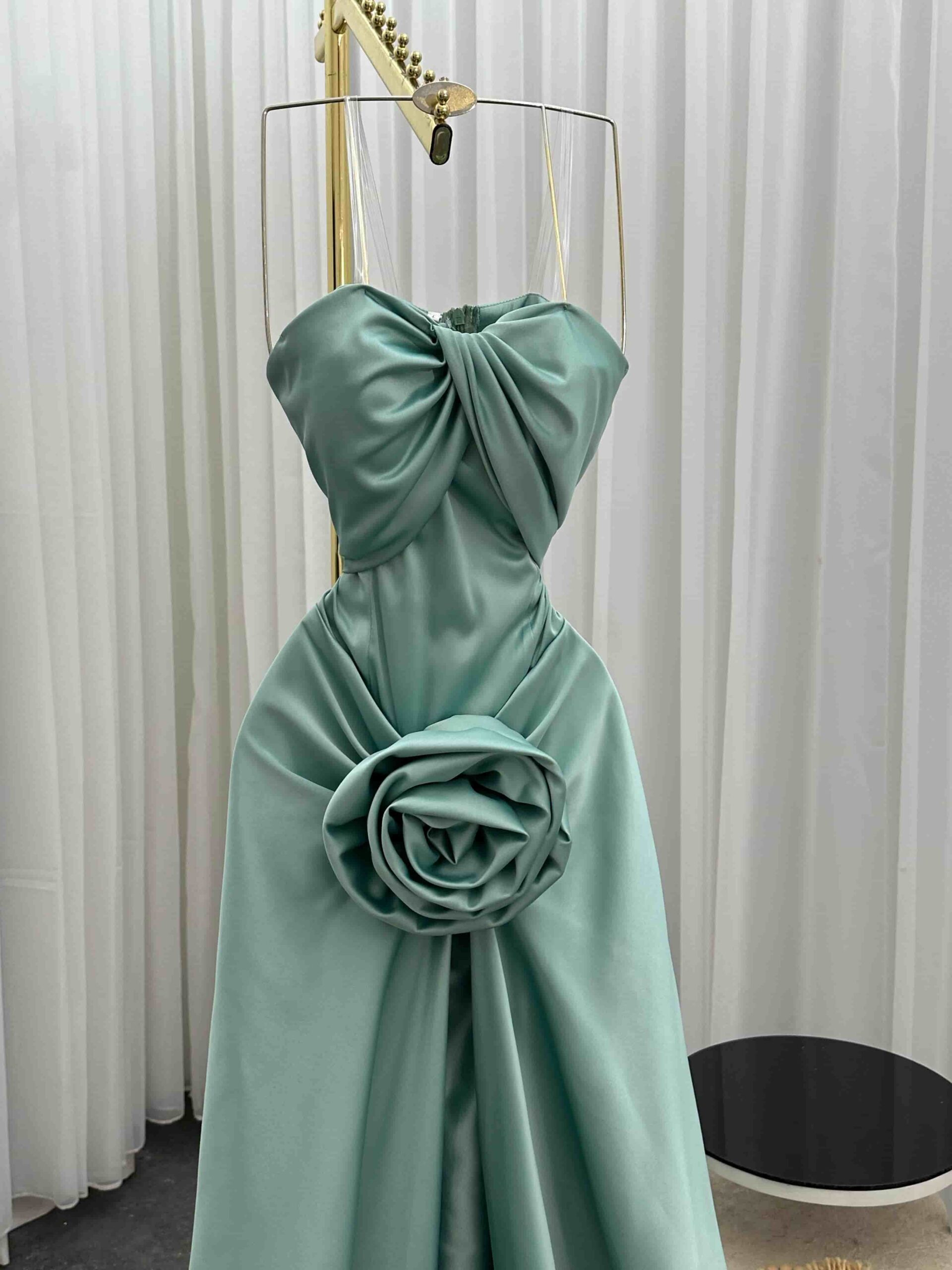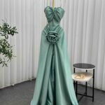 فستان سهرة طويل تفته استرتش بزهرة جانبية