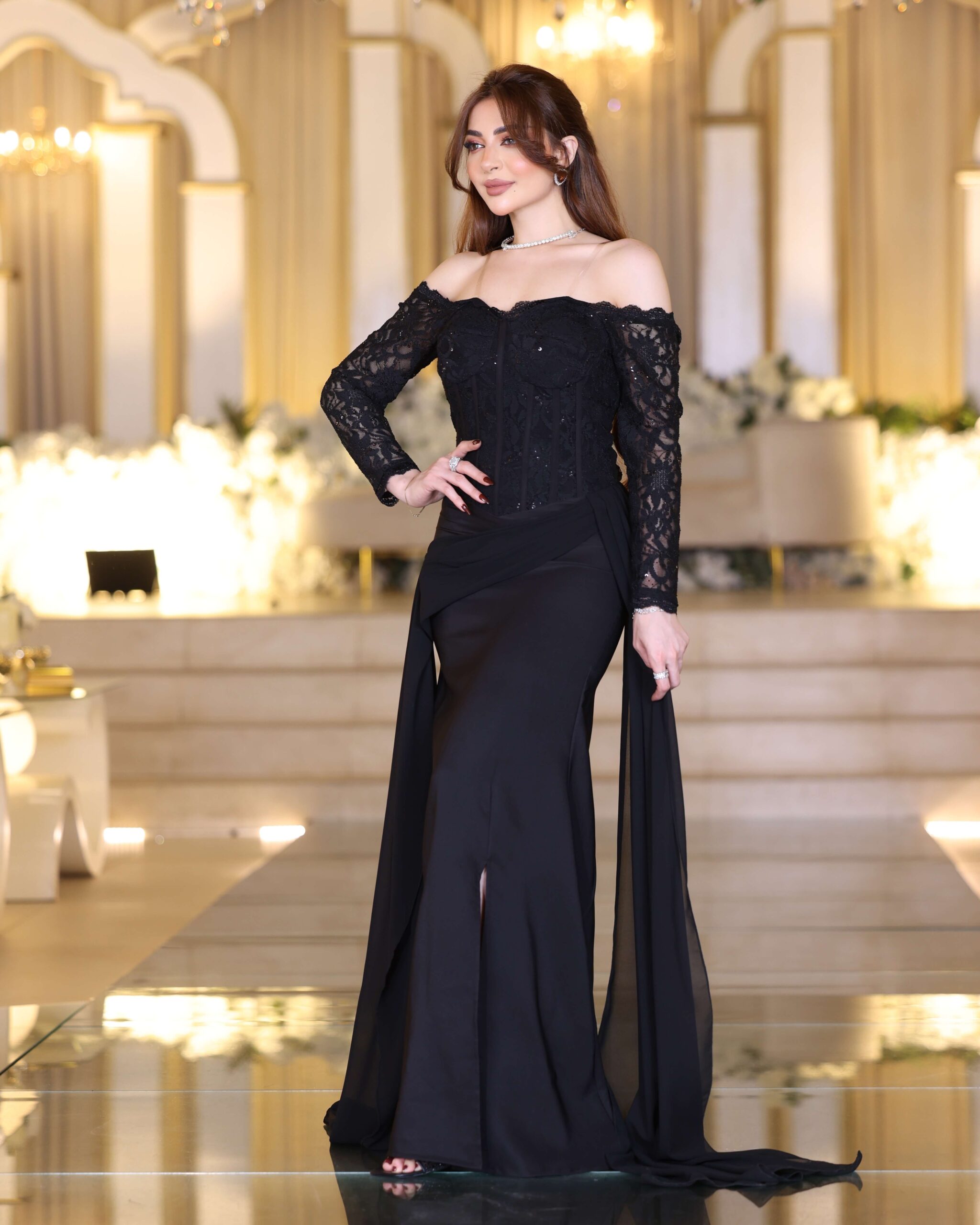 فستان سهرة فخم بكتف ساقط من قماش الميكادو، مناسب لحفلات الأعراس والمناسبات الرسمية وتصوير المناسبات الخاصة. يليق بالذوق الخليجي الرفيع ويُعتبر من فساتين سهره ملكي بتصميم راقٍ. يندرج ضمن فساتين سهره ناعمه، فساتين طويلة، فساتين مناسبات، فساتين فخمة 2025.
