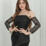 فستان أسود أنيق يجمع بين الرقي والأنوثة، بتصميم ضيّق يُبرز القوام بأناقة فاخرة. الجزء العلوي مزين بتطريز خرزي أسود ناعم يعكس الإضاءة بطريقة راقية، مع أكمام دانتيل شفافة طويلة قابلة للإزالة تمنحك مرونة في الإطلالة. ينسدل التصميم بكسرات دقيقة على الخصر مع كشكش جانبي يبدأ من الوسط حتى الأسفل، ليضفي حركة جذابة وخفة بصرية أنثوية مثالية لسهرات المساء والمناسبات الخاصة.
