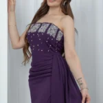 وصف قصة الفستانفستان سهرة طويل بلون بنفسجي غني، مصمم بأسلوب أنثوي جذّاب يجمع بين الفخامة والجرأة الراقية. يتميز بتصميم سترابلس بدون أكتاف، مع تطريز فاخر لامع يزيّن منطقة الصدر ويضفي لمسة براقة ملفتة.