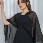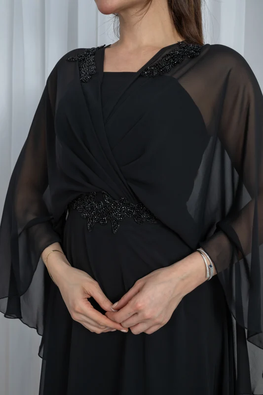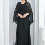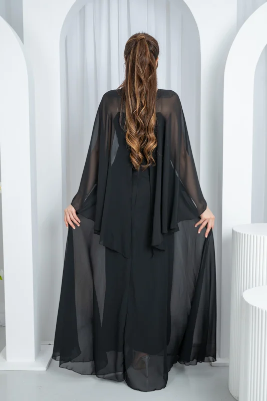🌟 القصّة الانسيابية تُبرز تفاصيل القوام برقة وأناقة لا مثيل لها، بينما تضيف الأكمام الناعمة لمسة من السحر الملكي.