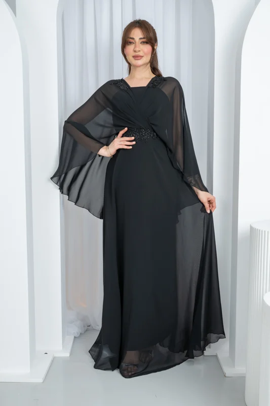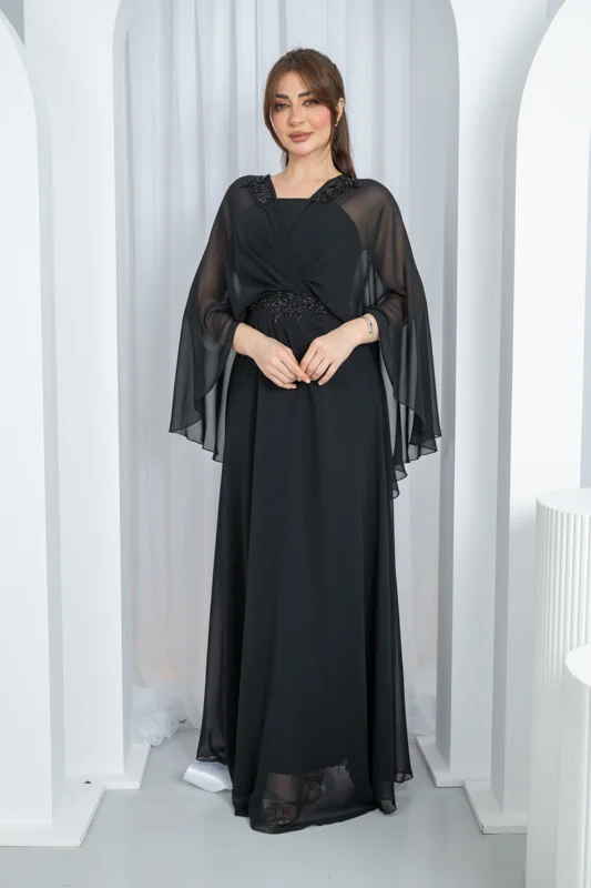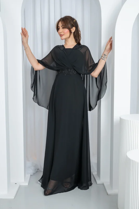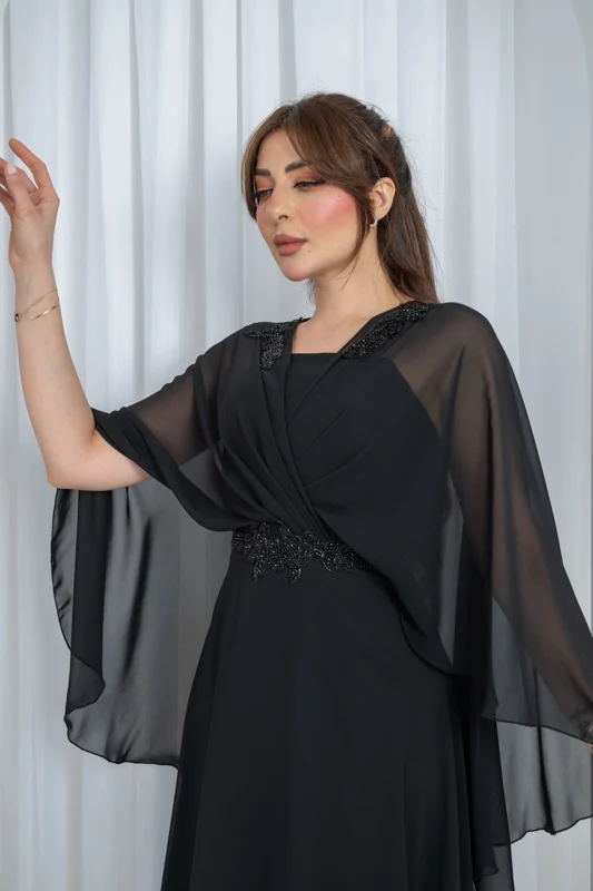 فستان ساحر مصنوع من الشيفون الفاخر بخفة حريرية، ينساب على الجسد كوشاح من الأحلام.