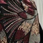 ✨ تطريز متشابك بخيوط براقة يزيّن الصدر والخصر، ليمنحكِ بريقًا متقدًا في لحظات السهر والاحتفال.