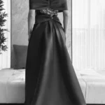 فستان يخطف الأنفاس مصنوع من تفته شانطون راقية، ينساب على الجسد كأنه لوحة مرسومة على حرير.
