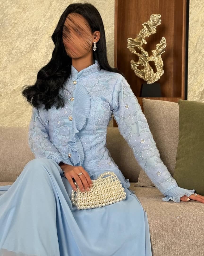 ✨ فستان همسات الفجر ✨ يأخذكِ في رحلة من الأناقة والرقي، حيث تم تصميمه ليبرز جمالكِ الطبيعي ويضفي عليكِ هالة من السحر والجاذبية.