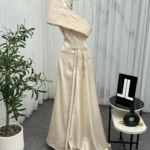 👗 التخزين: في غلاف حريري داخل خزانة جافة للحفاظ على اللمعان والتفاصيل.