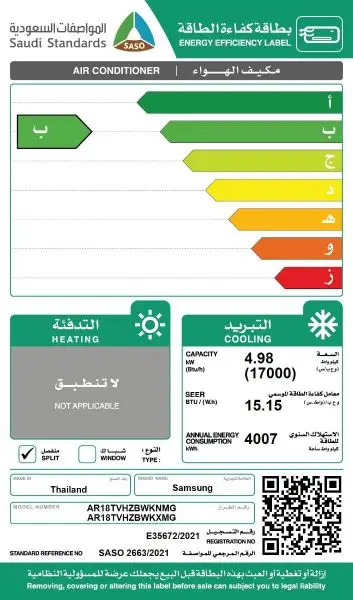 - القدره الفعليه لتبريد 17000