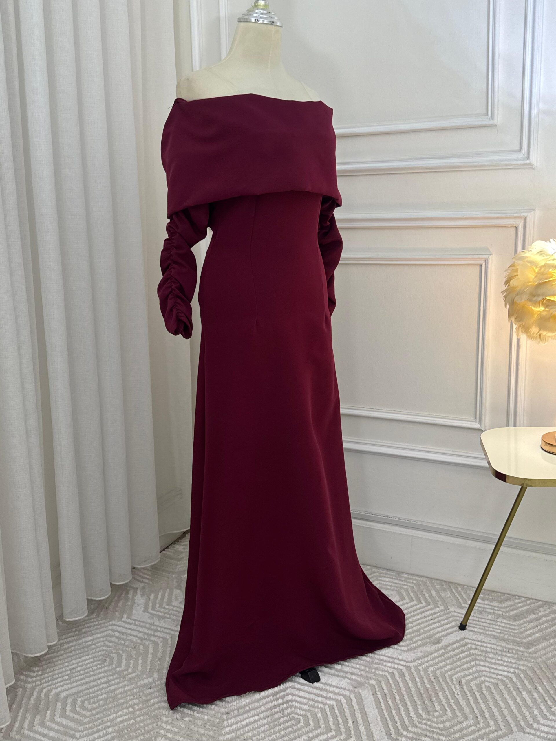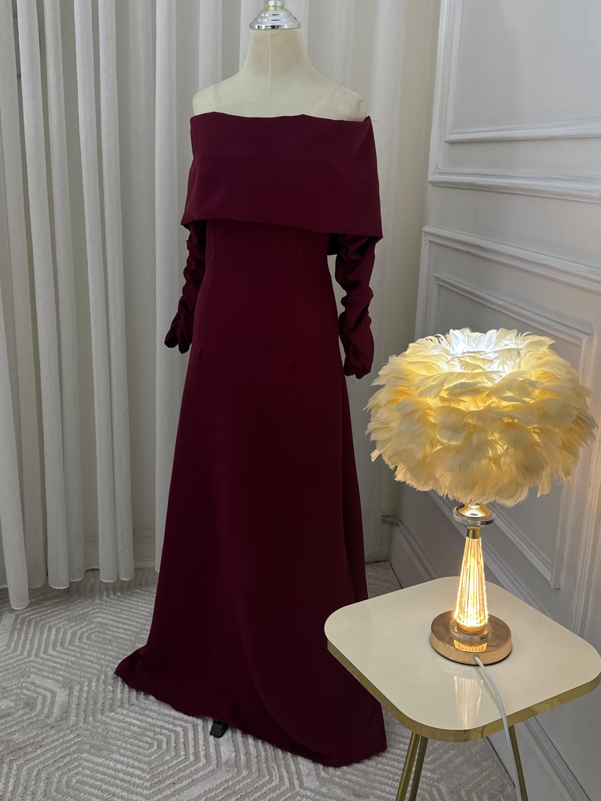 ✨ فستان فاخر مصنوع من خامة الباربي الفاخرة التي تمنحه هيكلاً ملكياً ولمعانًا راقياً.